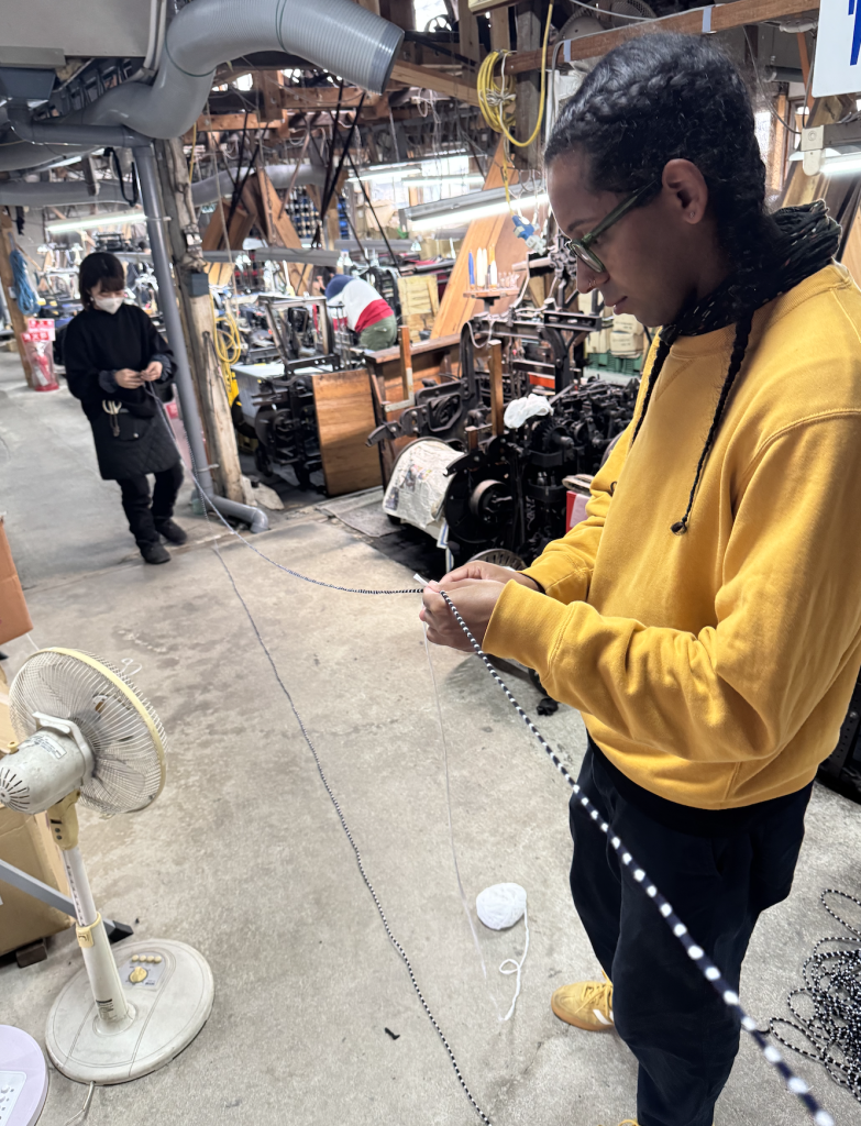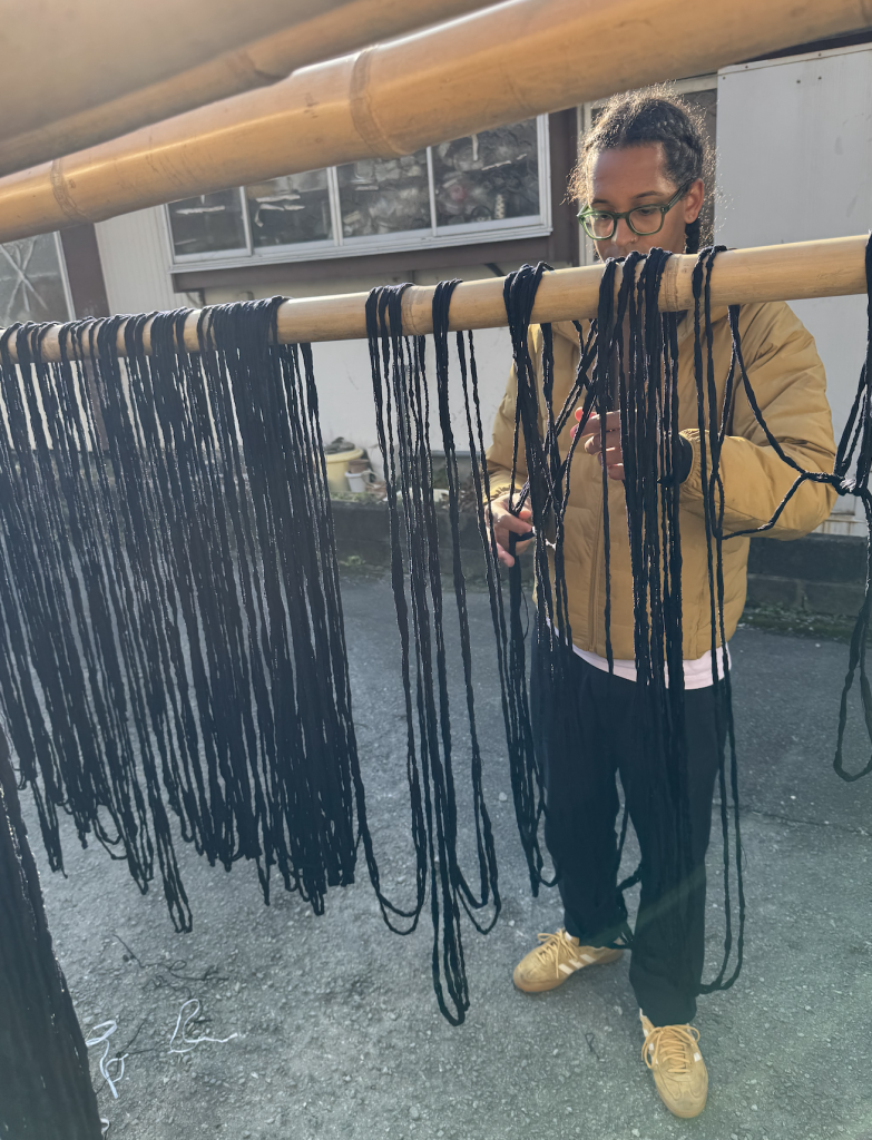 下川織物での5週間の滞在期間中、絣織物の製造工程の様々な段階を見学し、実際に参加する機会を得ました。この経験を通して、製造システムがどのように機能しているかを直接知ることができただけでなく、日々の実地作業を通して実践的なスキルを磨くことができました。